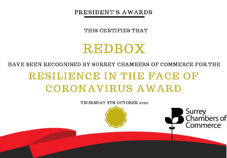 We’d like to say a huge thank you to Surrey Chambers of Commerce for recognising REDBOX as a UK Business Hero for our resilience in the face of coronavirus award.